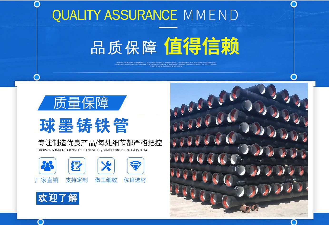 山西飛翔鑄業(yè)有限公司是一家以新興技術(shù)致力于研制開發(fā)、生產(chǎn)、銷售、施工安裝各種球墨管廠家,球墨鑄鐵管價(jià)格,國標(biāo)球墨管,k9球墨鑄鐵管,國標(biāo)球墨鑄鐵管,離心球墨鑄鐵管等系列鑄鐵產(chǎn)品。公司擁有完善的銷售、售后服務(wù)體系及一支由鑄造專家、工程師組成的精通產(chǎn)品設(shè)備和生產(chǎn)鑄造的技術(shù)力量隊(duì)伍。隨著企業(yè)的發(fā)展,我們積累了豐富的鑄造經(jīng)驗(yàn)與科技水平。使得產(chǎn)品具有高強(qiáng)度、高韌性、耐腐蝕性強(qiáng)等性能。同時(shí),我們獲得質(zhì)量管理體系認(rèn)證、產(chǎn)品質(zhì)量認(rèn)證、職業(yè)健康體系認(rèn)證、環(huán)境管理體系認(rèn)證。產(chǎn)品暢銷各地并打入韓國、新加坡等東南亞市場。 在未來的發(fā)展中,公司奉行誠信共雙贏,合作創(chuàng)盛世的企業(yè)理念。讓我們一起共創(chuàng)美好未來! 公司產(chǎn)品采用良好的工藝流程,以確保產(chǎn)品質(zhì)量的穩(wěn)定性:以良好的設(shè)備,確保質(zhì)量的可靠性。廣泛應(yīng)用于國內(nèi)外城市的市政建設(shè),通信,自來水,消防,園林,環(huán)保等行業(yè),產(chǎn)品大獲贊譽(yù)! 我們有多年的井蓋生產(chǎn)經(jīng)驗(yàn),多名老技術(shù)工人有將近二十年的生產(chǎn)經(jīng)驗(yàn),還聘請多名新技術(shù)研發(fā)人員,因?yàn)槲覀兪冀K堅(jiān)信質(zhì)量才是未來生存的根本,只有把質(zhì)量保證了,企業(yè)才會有更加美好的未來。公司堅(jiān)持用心服務(wù),誠信為本,與時(shí)俱進(jìn),科技為先的企業(yè)理念,堅(jiān)持科技先導(dǎo)、竭誠為廣大用戶服務(wù)。歡迎各界朋友蒞臨我公司參觀,指導(dǎo)洽談業(yè)務(wù),相信選擇我們就是選擇我們共贏的明天...